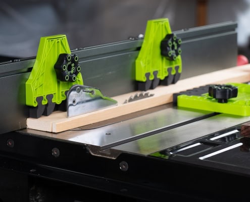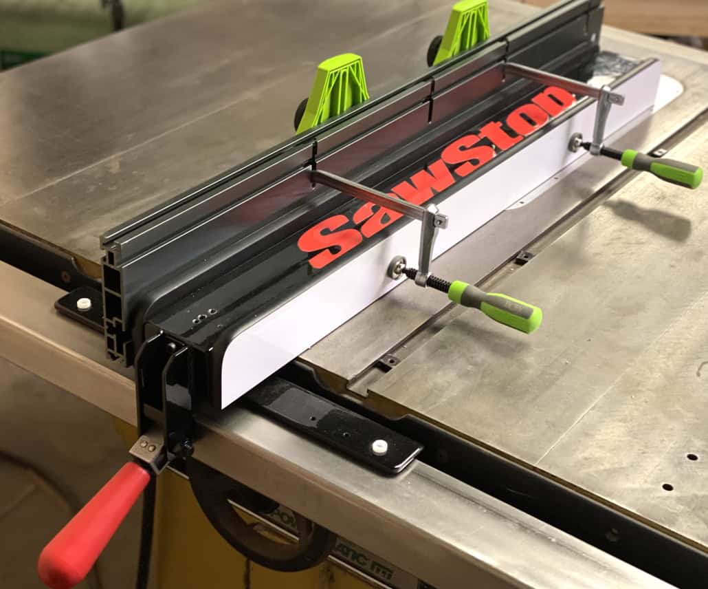 This bundle includes the FP1 FeatherPRO Table Featherboard, designed for larger table surfaces to provide consistent hold-down pressure, improved feed control, and enhanced kickback protection during cuts.